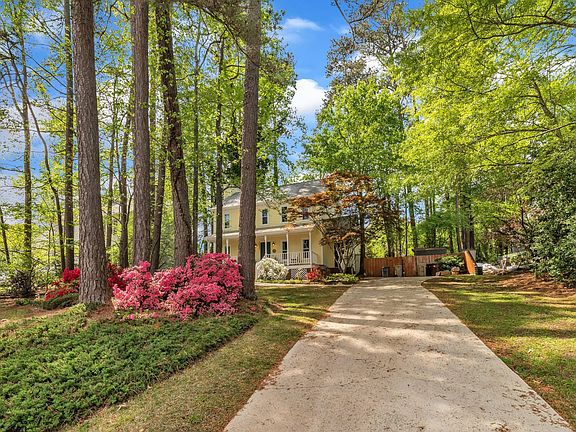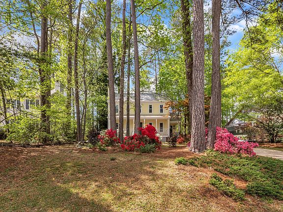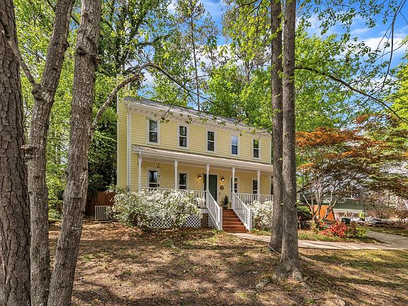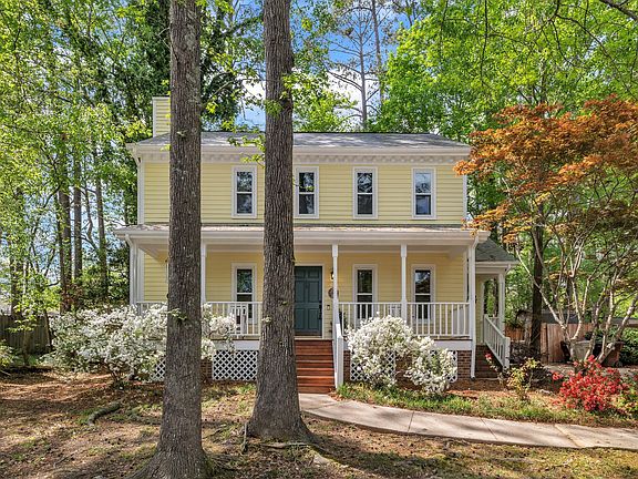 Nestled on a serene wooded lot, this charming two-story home offers 3 bedrooms and 2.5 bathrooms, surrounded by lush greenery. The inviting front porch leads inside to a formal dining room on the right and a spacious living room with a fireplace to the left. The kitchen boasts ample cabinet space and a cozy breakfast nook. Upstairs, the primary bedroom features a walk-in closet and an ensuite bathroom with dual vanities. The two additional bedrooms offer versatility for guests, family, or a home office. A beautiful 4 season sunroom overlooks the backyard and opens to a deck with views of the fenced-in yard, ideal for outdoor relaxation. Located in the heart of Garner, this home is conveniently close to I-40, offering easy access to Raleigh. Walking distance to South Garner Park including tennis courts, walking trails and pool. This peaceful retreat is the perfect combination of privacy and location, providing a wonderful place to call home.