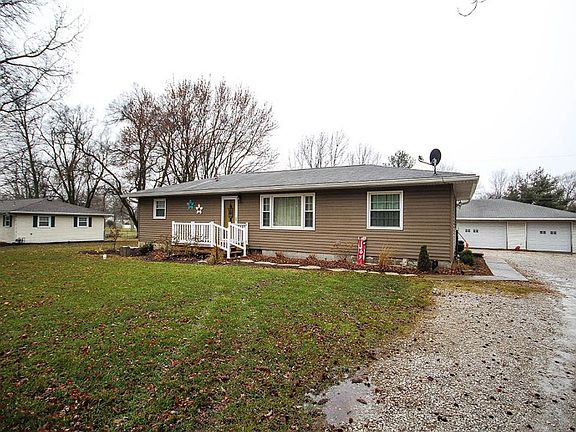 Loads of updates in this large Mt. Zion ranch. Vinyl siding and windows in 2013. Spacious rooms Throughout. 3.5 car detached 30 X 40 garage! Large yard. Everything is updated inside including flooring, kitchen (soft close drawers) and baths! The dining room opens to the roomy family room and the master suite. Glossy laminate floors. Custom trim and interior doors. Mud/laundry (multi-function) room off side door. Partial basement with structural guarantee from Helitech. 200 Amp electrical upgrade, high efficiency hvac, 6 Inch roof gutters, insulated garage doors and openers 2016. Front porch and storm door 2017.