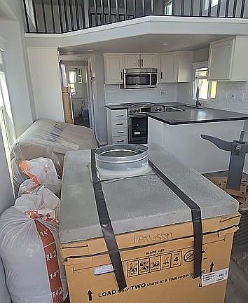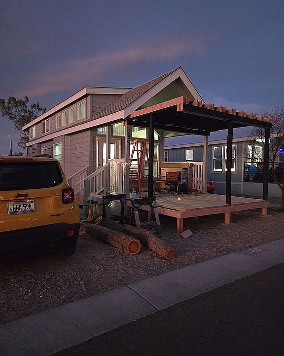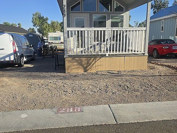 Welcome home! As-is, furnished. This 3bedroom 1 bathroom, double lofted park model bosts big storage, a big deck, big lifestyle and a small budget. Perfect for vacations, airbnb or to call home. This home comes with European, stainless steel appliances, fridge, gas range, microwave and dishwasher. 8x10x9 shed on site with built in work bench, just needs finishing touches. Reverse osmosis already installed. This site also includes a GE all in one washer/dryer combo (no more forgetting to switch the load!) Built in drawers, cabinets in bedroom for ultimate storage, 2 twin mattress, king sized bed, and 2 rv twin mattress. Home also comes with electric reclining couch, table with 3 stools, 2 smart tvs downstairs and outdoor tv with surround sound for superior entaining. Both lofts upstairs can easily sleep 3-5 individuals. Kitchen space has been modified for ultimate walk space, and additional storage access has been added in the bathroom under the staircase. Low voltage lighting has already been ran throughout the deck and porch addition, as well as electrical. 2-ton air conditioner cools like an igloo. Large propane tank included. Resort amenities include a sparkling pool, 2 jacuzzi, beautiful clubhouse, on-site additional laundry (not that you need it) and a quaint, delicious deli open Monday through Friday.