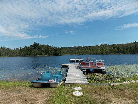 Your private oasis w/60 wooded acres & 700 feet on Spring Lake, which is about 50 acres in size & approx 35 ft deep, very clean lake, perfect for swimming. Nice creek runs through attracting deer & wildlife. Mostly dry w/about 10 acres of marsh & approx 10 acre patch of hardwoods. The rest is a mixture of trees through out. Great fishing w/a couple nice wall mounts...largest mount is a 42" & 17lb pike, as well as an 8 lb large mouth base caught and released. Property includes 30x40 drive through pole barn & two well maintained furnished mobile homes. One could be used as a primary residence and the other as a guest house/rental income. Main home is 1550 sq ft, w/an addition & wood frame built around mobile, offering 2 bedrooms, 2 baths, living room, great room w/12 ft ceiling, dining room, kitchen w/oak cupboards, island, & ceramic tile flooring, mostly drywalled & knotty pine through out. Guest home is in great condition w/a slide out addition, nice deck, 2 bedrooms & 2 baths.