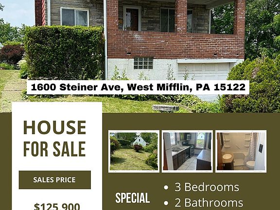 1600 Steiner Ave, West Mifflin, PA 15122 is a single family home that contains 972 sq ft and was built in 1928. It contains 3 bedrooms and 2 bathrooms. This home last sold for $88,234 in April 2023. The Zestimate for this house is $163,000. The Rent Zestimate for this home is $1,363/mo.