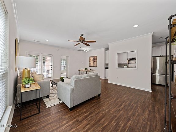 Welcome to this beautifully updated 2-bedroom, 2-bathroom end unit gem, situated in a prime location close to Mayfaire and Wrightsville Beach. Step inside to discover LVP flooring throughout along with freshly painted interior and abundant natural light. The kitchen has undergone a renovation, boasting honed black granite countertops, custom white cabinetry, stainless steel appliances and water purification system. One of the standout features of this property is the upgraded 2021 HVAC system. Both bedrooms are spacious and offer ample storage. The primary bedroom includes an en-suite bathroom, providing privacy and convenience. The additional bathroom has also been updated with modern fixtures and finishes. Location is key, and this home delivers. With its proximity to Mayfaire and Wrightsville Beach, you'll have access to a plethora of shopping, dining, and entertainment options just moments away and Leeward Village offers a quaint community pool. Don't miss this opportunity to own a meticulously updated 2-bedroom, 2-bathroom home with desirable features and a fantastic location.