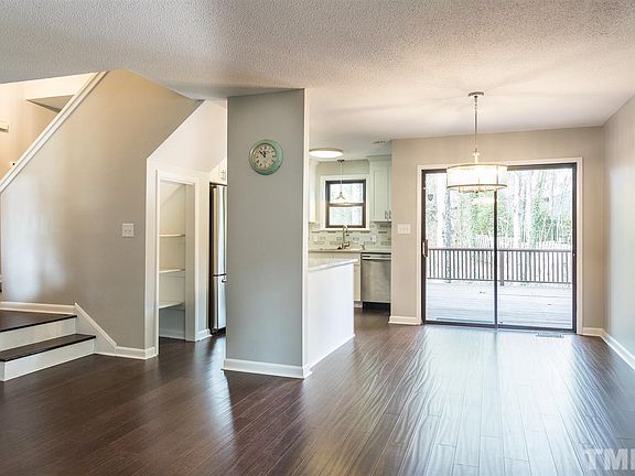 Fantastic House in Great Location in Cary. Everything is done, move in ready. Recently updated bamboo flooring in main living area, kitchen cabinets with soft close, granite countertops, stainless steel appliances including fridge and washer & dryer. Check out the neat storage/cubby hole. All operable windows replaced, new gutters. Huge deck and private wooded back yard. Walk to greenway, tennis courts, softball/baseball field, playground. Outdoor storage. Minutes from Trader Joe's, restaurants etc.
