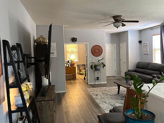 In beautiful cabezon neighborhood open floor plan and fresh paint and hardwood floors both grey color looks great , refrigerator air, three bedrooms and two bathrooms with an office that could be used as a bedroom if need be. Two car garage and back yard is paved with turf also, and a covered patio area. Corner lot with great neighborhood schools close by 1 yr lease and all utilities will be in renters name prior to moving in. No smoking in home no illegal drugs or activities. Home is located in HOA will be paid by owner