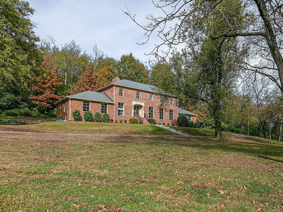 Traditional Nashville Classic! Handsome two story brick on treed 1.59 ac. Original to the site, but new architectural design/build by Lone Oak Builders. Spacious light filled rooms with floor length windows, walnut stained wide plank oak floors, amazing Cook's kitchen-6 burner gas range, Thermidor frig, Bosh dw, marble tops, wall of pantry/drawers/serving, Primary BR down/marble BA, his/her closets ,3BR/BA up, great closets, 2 dens, 2 fireplaces, bonus, office,2 laundries, covered patio