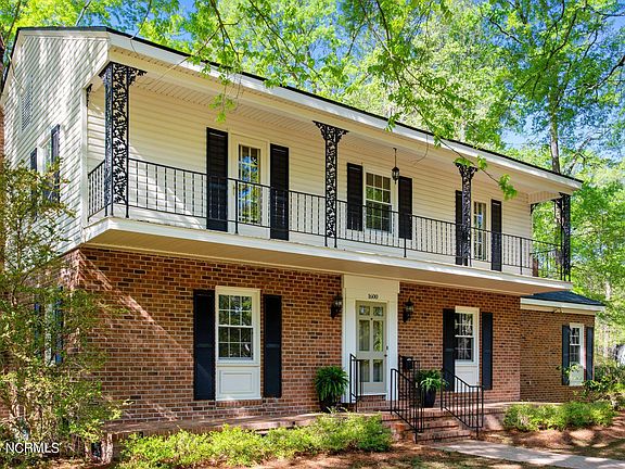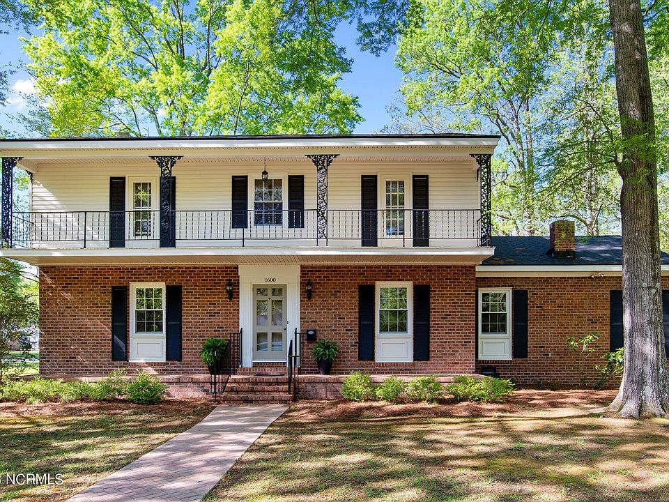 This beautiful exterior includes second floor wrought iron rail detailing and horizontal siding. The interior floor plan is a compilation of elegantly appointed and spacious rooms which include formal living and dining rooms, four upstairs bedrooms and 2 full baths plus main level half bath within the two storied home. The large kitchen is highlighted with a center island with ample counter, cabinet and food prep/work space. Also on the main level is a cozy family room featuring a masonry fireplace , bay window and built in bookshelves. To complete the main floor, there is a large laundry room and utility/desk space area. The beautiful second story staircase leads to a large landing and upper central hall creating a nice arrangement of family bedrooms and baths. The primary suite is showcased with generous floor space, three closets and a door to upstairs balcony. There is an en suite primary bath that features single vanity and counter sitting area and separate shower. Bedrooms two, three and four are also located on the second floor, with one of the front bedrooms having access to the balcony. This home is situated on a beautifully landscaped corner lot with mature trees. This stunning home is move-in ready with new roof, new interior paint and newly refinished solid oak hardwood floors that are original to the home.