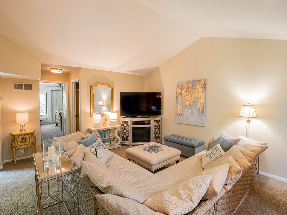 This amazing open concept, second floor condo is warm and welcoming. Vaulted ceilings with plenty of natural light from the patio and the solar tube. Generous sized rooms. In unit full size washer and dryer. The kitchen has nice counter space for cooking and plenty of storage. Stainless steel appliances and maple cabinets. A large balcony with custom doors, which make it a three season room. Under ground parking, fitness center club house and library Are for your enjoyment. Secure front entrance.