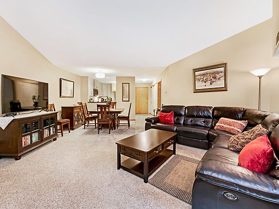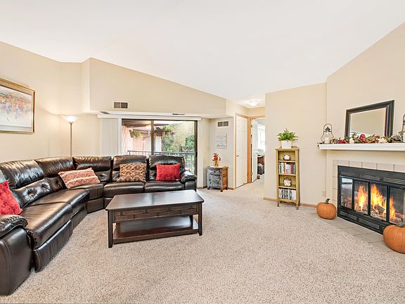 Don't miss your opportunity to be the next owner of this terrific top floor unit with stellar views of the green space. This condo offers a cathedral ceiling, operational gas fireplace & the chic kitchen was recently updated with ss appliances, quartz counters and ample cabinets. The spacious master bedroom has an attached bath with large WIC & the sunny second bedroom could be a den or office - based upon your needs. In unit utility room. The HVAC was replaced in 2014. Pet friendly building, you are able to have 1 dog (weight restrictions) or cat. 1 or optional 2 conveniently located parking spot(s) in the attached garage. Professionally managed building offers fitness room, community rooms and rentable guest suite. Convenient to parks, shopping and minutes to downtown. Check it out!