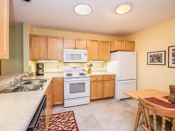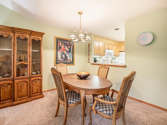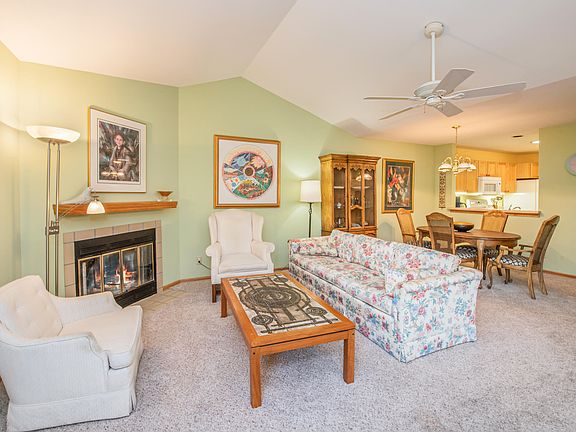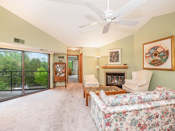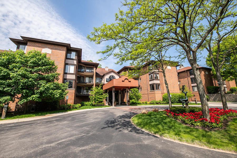 Providing a direct view of the pond with seasonal fountain is this light filled unit in desirable Glendale Lakes. The eat in kitchen features newer wood cabinets & counters with the great room showcased by the cathedral ceiling & operational GFP. A split bedroom design with the primary BR en suite and custom WIC. The utility room features a full size side x side washer & dryer with extra storage space. Additional features of this unit are the 2 parking spots in the heated garage & 3rd floor storage unit, newer furnace & central air (2016). The complex offers community rooms, guest suite, fitness center and 8 acres of beautifully maintained & mature grounds. Pet friendly building - 1 dog under 20# is permitted. See rules & regulations for specifics. Welcome Home!