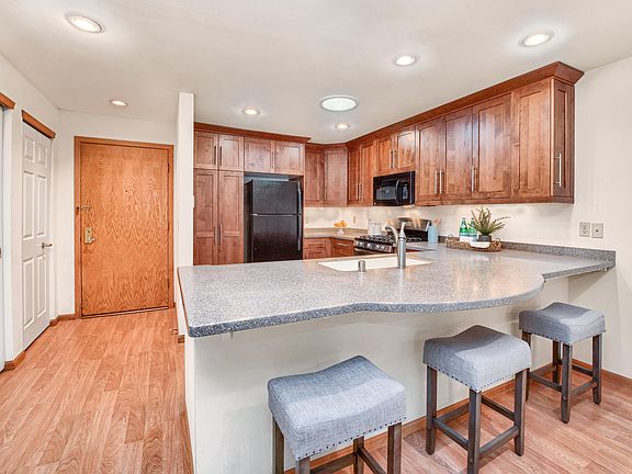 This is the PREMIER Glendale Lakes condo you have been waiting for. Flooded with natural sunlight from the solar tube and west exposure this top floor open concept unit is highlighted by the operational GFP with soaring cathedral ceiling, The spacious kitchen offers an amazing amount of storage & counter space with extra large breakfast bar. The MBR is large enough for a king sized bed and is attached to a private bath with large custom WIC. In unit utility room with full size side by side washer & dryer. Private balcony overlooking the west pond. Additional amenities are the 2 parking spots in the garage located close to the lobby with adjacent private storage room (8' x 10'). High efficiency HVAC unit (2014). Pet friendly - 1 small dog is permitted. Check condo rules for specifics.