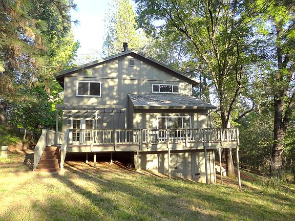 Wonderful Meadow Vista location close to town on 2.3 quiet acres. You will enjoy your tree top views from the wraparound deck. Delightful living room features river rock wall and exceptional Webster Stone Foundry wood burning stove. Kitchen with big eating bar and extra large pantry opens to dining area with french doors to deck. Hardwood floors throughout 1st floor. Family room with seperate bath and deck can be a main floor master. 4 bedrooms upstairs. Greenhouse with water and electricity. Circular drive with plenty of parking!
