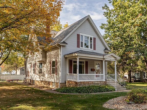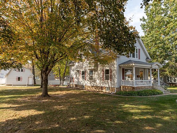 ***NEW ELECTRICAL*** Home has been upgraded and a new electrical panel has been installed. 220 service can been placed in the attic in anticipation of adding air conditioning by new owner. City has relocated meters and buried lines. All work is permitted and performed by licensed electricians. Stately 2 story Victorian home has had only 1 owner for the past 50+ years. Original hardwood floors throughout, most have been covered by carpet, so are in great condition. The original fireplace mantle and tile surround in the living room are in pristine condition. The oak wainscot, pocket doors, pillars, base boards, stair treads and railings are absolutely stunning. All original windows with wavy glass. Other notable features include the large front porch, corbel details on the exterior and Juliet balcony on the second floor. This home is waiting for your love and care to bring it back to its original glory. The large, detached garage includes a full attic space and newer shed provides tremendous storage. The basement has been used as a woodworking shop where many hours were spent creating masterful works by the previous owner. Mature trees shade this stunning property creating a beautiful backdrop to make lasting memories. Just blocks from grocery store, elementary school, downtown shops, bars and restaurants. If you love historic homes, this is the property for you!