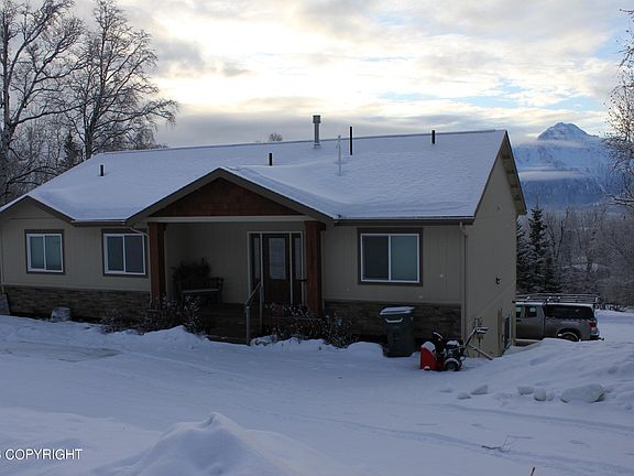 Unique RANCH home with SPECTACULAR view of Pioneer Peak. 4 car, tuck-under garage with lots of amenities to include 3/4 BTH. Bonus room in basement. Open floor plan, Acacia flooring, granite countertops, gas cooktop with downdraft vent in island, SS appliances, and cherry cabinets (soft close). Large laundry room with lots of cabinets (W/D stay). *More photos coming soon*7 minutes from Palmer.- Bonus room (was part of garage) (11x16, 225 sf) - Oversized garage (1482 sf) tuck-under, with in-floor heat, 2 man door's and storage area (2nd driveway access to back as garage is under house) - Garage - Wired for 220 V - 2 single 9' tall garage doors, 1 double door 8'6" x 16', 26' deep - Shed, plow truck included - 2.3 acres, natural landscape with lots of trees. - Plenty of level area for parking - Circle driveway front - South facing, covered back deck - spectacular view of Pioneer Peak - Deck plumbed for natural gas. - 2 large pantry cabinets with pull-out drawers - Soft close cabinets - Under-cabinet lighting - Gas fireplace - Triple Pane Windows - 2nd BR has a walk-through closet to bathroom. - Large laundry room with tons of cabinets - Exterior Christmas lights plugs on switch - Future exterior electric circuit on switch. 40' Connex on the property - purchase negotiable