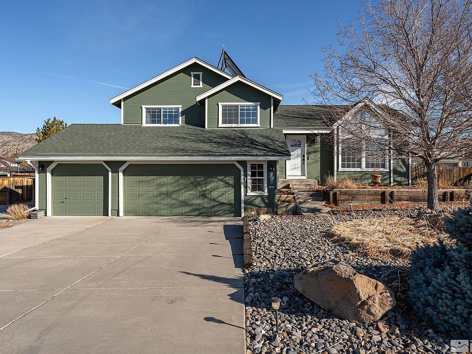 Welcome to 16000 Scarlet Way, a beautifully updated split-level home offering 3 bedrooms and 2.5 bathrooms. All bedrooms are conveniently located on the top floor, while the main living level features a spacious, open-concept dining room, kitchen, and living room. The kitchen has been thoughtfully remodeled, including the removal of a large wall to create an open and inviting space. Gorgeous large windows and high ceilings flood the living area with natural light, enhancing the home's airy feel., The bottom level features an additional family room, perfect for extra living space or entertaining guests. Situated on a generous half-acre lot, this property provides ample space for expansion and outdoor enjoyment. A large shop on the property offers versatile opportunities for workshop projects and additional parking needs. Both the shop and the attached garage are equipped with 220-volt outlets, and the shop is fully heated and air-conditioned for year-round comfort. With convenient pull-through access, you can easily bring vehicles into the backyard, (the rear garage door currently does not have a motor). Additionally, RV parking is available for added convenience. The beautifully landscaped yard features cherry, peach, and nectarine trees, providing delicious homegrown fruit and a lovely outdoor atmosphere. Recent updates include new fixtures in many areas of the home, as well as refreshed flooring on both the top and bottom levels. The backyard features a shed for extra storage and a charming chicken coop that will convey with the house. Enjoy the best of both worlds with the home's prime location—just minutes from South Reno’s excellent shopping and dining, as well as quick access to outdoor adventures. A short drive brings you to Virginia City for weekend fun and special events, while nearby walking trails and mountain activities offer endless recreation. Plus, with Mt. Rose Highway only five minutes away, you can reach the stunning shores of Lake Tahoe in just half an hour. Best of all, there’s no HOA, allowing you to fully enjoy the property’s flexibility and potential.