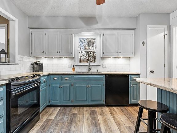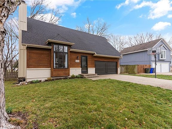 Outstanding Olathe location. Large PRIVATE backyard. backs to green space with creek. Recent updates include kitchen with granite countertops and tiled backsplash, main floor laundry, 4th bedroom in basement with an egress window, and new bathroom in the basement, vinyl plank flooring throughout main floor, and a new roof in 2021. Great places to gather include the large deck, an adjacent office on the main floor, a formal dining room open to the eat-in kitchen, and a family room in the basement. Excellent walkable location