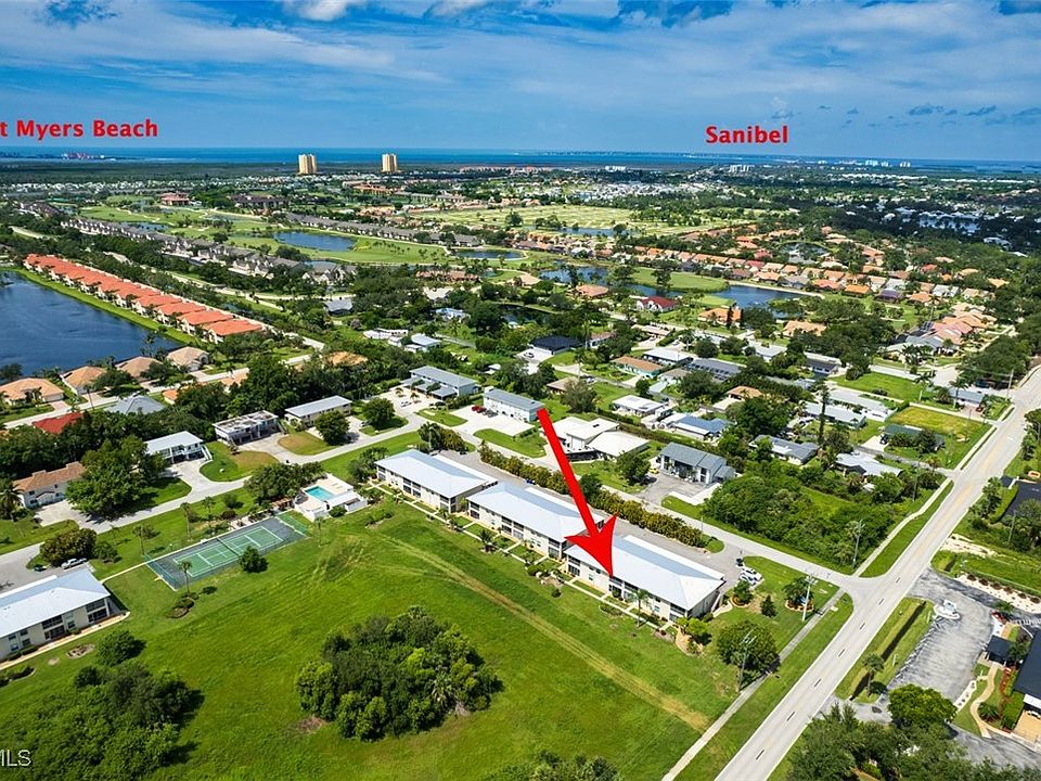 This inviting second-floor condo offers perfect blend of comfort, style, and location- just minutes from white sands of Fort Myers Beach and Sanibel Island. Featuring rich Brazilian Cherry wood floors throughout, this partially furnished unit boasts a spacious layout with 2 bedrooms and 2 full baths. Enjoy serene, landscaped views from your private, tiled, and screened lanai- ideal for morning coffee watching Sunrises or evening relaxation. The condo has been thoughtfully updated with new tub/shower with wall panel kit, electrical, and plumbing, offering peace of mind and modern convenience. Well maintained A/C unit. Additional features include covered parking under your assigned carport, extra storage unit near your condo, full washer and dryer. New metal roof and future exterior painting on all buildings. No flooding in this 2nd Floor unit. Amenities include community pool, Pickleball & Tennis courts, shuffleboard. Whether you're looking for a vacation getaway or year-round residence, this well well-maintained condo is a fantastic opportunity in a prime coastal location.