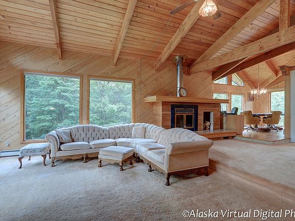 Rustic, rough hewn beams are the centerpiece of this well built home nestled on a heavily treed 1/2 acre lot. Escape to your private spot yet within city limits! Home is adjacent to Little Rabbit Creek Bluff Park! Enjoy the privacy of your own estate without paying the taxes on a much larger parcel! New roof 2013; new deck 2013. Tongue and groove ceilings create true Alaskan charm. Sold as is.
