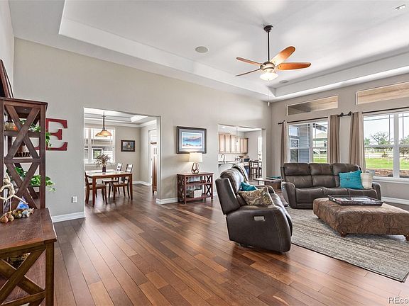 PRICE IMPROVEMENT! This magnificent 4-bed, 3 bath dream home, nestled on a private cul-de-sac welcomes you with west facing mountain views of the Flatirons and Longs Peak and an open concept living space bathed in natural light. The seamless layout is perfect for entertaining guests or relaxing in front of the cozy gas fireplace. The foyer opens into a spacious grand great room with a 12 ft coffered ceiling, a built-in solid cherry media center and then flows gracefully into a beautiful dining room with a coffered ceiling and crown molding fit for royalty. A large open chef’s kitchen features granite counter tops, a large central island with a breakfast bar, double wall ovens, gas cook top, solid maple cabinets, a breakfast nook and a mail station to meet all of your needs. Floors throughout the house are gorgeous rich solid Brazilian Cherry hardwood that will last a life time. The relaxing master suite includes a bay window sitting area, vaulted ceiling, a private en-suite 5-piece bath with a large soaking tub and a roomy shower. Three additional bedrooms offer flexibility for a growing family, a home office or guest rooms. The kitchen and master suite open onto a 460 sqft deck made from solid Brazilian IPE that will last more than 50 years in all of Colorado’s seasons. Just steps down from the deck is a luxurious 670 sqft patio made from hand cut Lyons Redstone easily accommodating all of your outdoor barbecues and gatherings while surrounded by a spacious backyard perfect for unwinding with family and friends. There is also a 1200 sq ft shop with 12 ft walls and vaulted trusses that has room for 6 cars, boats or even a full-size RV. Don’t miss this refreshing, beautifully landscape oasis just waiting for you to make it your home. SELLERS ARE MOTIVATED, SCHEDULE YOUR SHOWING TODAY!