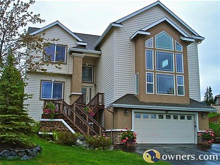 Single Family Home for sale by owner in Anchorage, AK 99516. PRICE REDUCED!!! Elegant, loved, cared for...this fully landscaped, stately 3-level hillside home overlooking mountains and inlet features high ceilings, a fireplace, and a bright, open floor plan which lends itself well to entertaining. Numerous upgrades have been added to both exterior and interior. A great window serves as a frame for brilliant sunsets. Remodeled kitchen displays striking granite counters and backsplash, large central island, designer track lighting and built-in hutch. Italian plasterwork creates a warm touch to master bedroom and bath. A large Trex bilevel, low maintenance deck is perfect for summer cookouts and sunning; stairs at house front are also Trex. Laundry and garage feature granite detailing in sink areas. Enjoy a remodeled home theater for friends and family movie nights during long winter evenings. And in summer, a private backyard that partly abuts a greenbelt will dazzle you with its mature, breath-taking gar