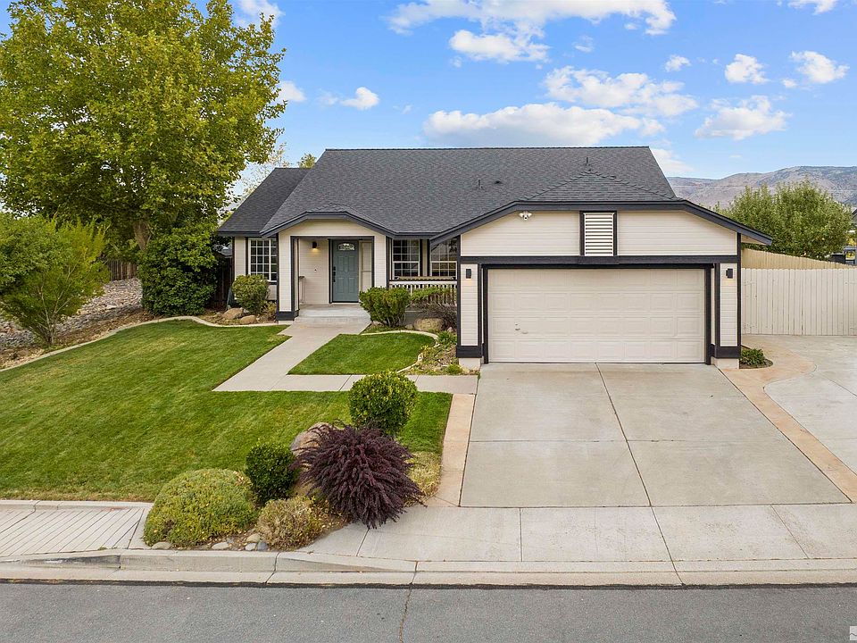 Nestled on a sizable lot with no rear neighbors in the suburbs of south Reno, this gorgeous Galena home is truly something special. Located only 12 miles to Mt. Rose ski area and only minutes away from Summit Mall, Galena Junction Shopping Center (with Raley's One grocery store), parks & soccer fields. This home has lofted ceilings and an airy open floor plan accentuating the bright, spacious interiors found within., A grand living area flows seamlessly into the kitchen, where you’ll find stainless steel appliances, a cozy breakfast bar, modern backsplash, and plenty of cabinetry. The pristine primary suite features a decadent private bath with ornate dual sinks, tiled shower, and large walk-in closet. Additional rooms provide ample space for any lifestyle or purpose. Enjoy making memories in your fully fenced backyard, which showcases parklike exteriors with lush grass and landscaping, RV Parking, a storage shed, concrete patio with a built-in fire pit, and more. If you’re looking for a beautifully-maintained property that you’re sure to adore, look no further! * New Roof (8/23), New Exterior Paint (10/23), New Interior Paint (11/23), New Carpet (11/23), New smoke alarms (11/23)