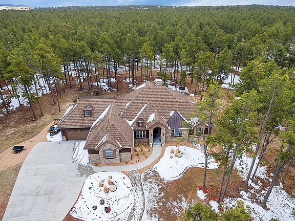 Luxurious 5 bed Home Located in the Gated Community of the Black Forest Reserve. Drive up to this Private Secluded home that sets on 3.62 acres. Be Greeted by Elegance. Take a Breath as you enter the Grand living room & take in the custom wood floors, & skip trowel textured walls from floor to ceiling. Walk over to the Chefs Dream Kitchen Featuring Bosch & Kenmore Elite Stainless Steel appliances, a Massive 10' Island. Enjoy Colorado Living to the Fullest w/ the Indoor/Outdoor Living Room. You will be Amazed at the Upgrades in this Home from the Custom 9' doors to the Upgraded Lighting Fixtures. The Kitchen is complete w/ a walk-in Pantry, Double Ovens, Wine Fridge & an Eat in Nook. Continuing on the main level you will notice the Beautiful Formal Dining Room that is Bright and Open with Arches. Next is the Office with a perfect View. Set back and Relax in Living Room with Vaulted Ceilings, a Custom Stone Fireplace, and Custom French Doors that open to the Deck.