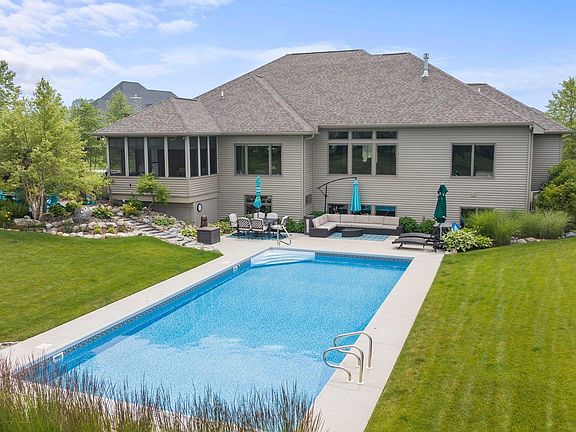 Welcome to the epitome of luxury living in the highly sought-after Twin Eagles community, where elegance meets tranquility. Nestled within the prestigious Northwest Allen County Schools district, this stunning ranch-style home, crafted by the esteemed Pristine Homes and Amish craftsmen, offers an unparalleled living experience. The abundant windows throughout and the ten foot ceilings provide breathtaking views of the serene pond and the magnificent pool, inviting natural light to flood the living spaces. Designed with a split bedroom plan, privacy and comfort are paramount in this residence. Entertaining becomes effortless as the open concept seamlessly connects the great room to the gourmet kitchen. The kitchen is a chef's dream, with handcrafted dovetailed, soft-close cabinetry, complemented by stunning granite countertops. Professional-grade, industrial series appliances elevate the culinary experience, while a massive and highly functional island provides ample space for meal preparation and casual dining.The master en suite is a sanctuary of relaxation and indulgence. Pamper yourself in the massive walk-in travertine tile shower, complete with a rain shower head, or unwind in the jetted oversized garden tub. Dual sink vanities add a touch of luxury, while the out of this world, exceptionally large walk-in closet offers plenty of space for your wardrobe and accessories. The professionally landscaped grounds, coupled with the expertly crafted hardscape, create a visually stunning exterior. The Cloudburst irrigation system keeps the lush greenery vibrant and healthy. A new high-end sports pool equipped with a powerful heater beckons you to enjoy refreshing swims in water warmed to your desired temperature in less than two days. A substantial pergola overlooks the pool and pond, offering an idyllic setting for relaxation and entertainment. Inside, solid hickory floors grace the majority of the home, including the closets and the master closet addition. Outside of the three-season porch, the house is wired for a hot tub. Stamped concrete walkways and patios add a touch of sophistication to the exterior, and for those seeking outdoor adventures, the new Pufferbelly Trail is just seconds away. This extraordinary property combines the finest craftsmanship, luxurious amenities, and an idyllic location, offering a truly unmatched living experience. Welcome home.