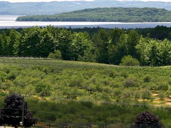 Absolutely incredible property in the heart of wine country on the Old Mission Peninsula. More than 10.5 acres of beautiful rolling hills, stunning views of both bays, one of the highest points of the entire OMP. Currently zoned agriculturally, this property is active with award winning riesling grapes, sweet and tart cherries, even an acres of apples. Absolutely a one of a kind property, this is the site of your future home masterpiece.