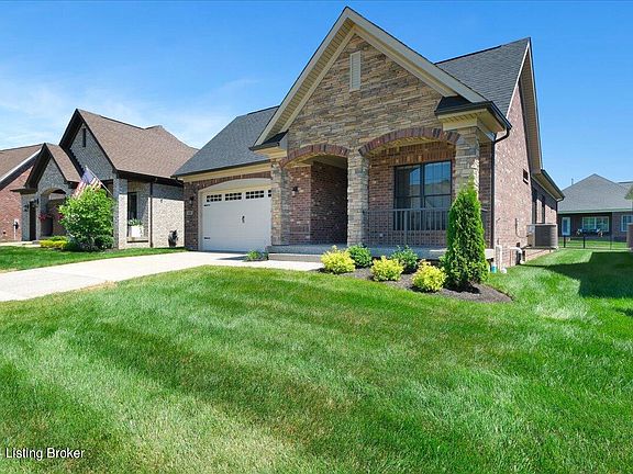 Welcome Home to this outstanding garden home! Enjoy the ease of living on one floor with on-trend upgrades like granite counters, solid surface floors, tiled bathrooms, beautiful lighting, primary suite w/ ensuite bath, and so much more. Main floor includes 2 bedrooms, 2 full baths, office, great room, kitchen, & laundry. Kitchen has stainless appliances and gas range; vaulted great room offers gas fireplace with built-ins. The office is finished with built-in desk & bookcases but can easily be transformed into a 3rd bedroom. Enjoy the view of this premium lot and relax on the screened porch or open patio. A full, unfinished basement with full bath rough-in is perfect for future personalizing or storage. Attached garage and large laundry room finish the layout. Home is just 2 years young and move-in ready. Schedule your tour today and make it yours!