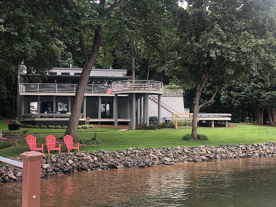 FOR SALE by OWNER. Showings by appointment. Please text or call. Open House Sunday July 11th between 11:00 am - 3:00 pm. Spacious open floor plan in this uniquely modern steel frame Lake Norman waterfront home on a private 1.3 acre lot. Ample breath-taking views from multiple areas of the home as well as from several large decks. It is situated on a peninsula in which views of both sides can be appreciated. Great spaces indoors and outdoors for gatherings, relaxation, and entertainment. Very recently renovated primary bath with stand alone soaking tub, large custom tile shower, custom wood vanity, and beautifully tiled floor. Large primary suite with waterfront views and a very large closet. A second bedroom also with waterfront views; spacious 3rd and 4th bedrooms with nice views of the front lawn and mature trees. New flooring throughout home to include plantation teak on the upper 2 levels. Great room features a wall of windows overlooking this beautiful quiet cove in the desirable Huntersville area of Lake Norman. 2 HVACs, 1 replaced Spring of 2020, and both have been recently serviced. The community offers a swimming pool, basketball, and a tennis court which is a 2 minute walk from the home. Located just 5 minutes from great dining and shopping, as well as close to Interstate 77 for a short drive to downtown Charlotte and to the Charlotte Douglas International Airport.