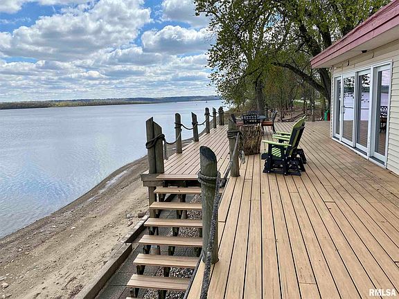 ON THE RIVER beach house is now available to you! This home can be your perfect getaway between Peoria and Chillicothe, or your very own new home. Enjoy beautiful sunrises and sunsets from the 1400+ sq foot deck. Sellers have loved this home well and made so many memories here. Some of the best memories involved jet skiing, boating, water skiing, tubing, cookouts, volleyball with neighbors and friends, bonfires, and just being outside. Home has just over 80 foot of water frontage. Home is prepared for river flooding, and is in a flood plain. Newest updates include 2021 water heater and a 2021 well pump. No knowledge of roof issues, suspect humidity is issue for peeling paint on main level.Basement bathroom is minimal. The alley on west side of home is property line; the lot with pickle ball court is not included in the sale, but used in photos as a landmark reference. Make your appt today! *Agent related to Seller*