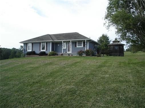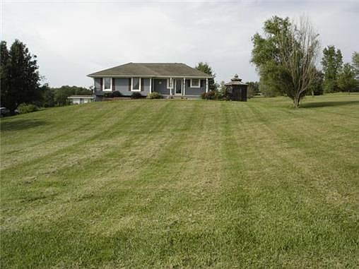 Pretty hilltop setting on 3.8 acres w/ great views. Plenty of space to add an outbuilding. Deck plus screened gazebo to enjoy. Outdoor space 24x12 shed. Open floor plan. Home being sold in current condition. Buyer can do inspections. BSMT finished except for carpet. Seller has roofer who will replace roof at closing. Getting carpet bid, buyer can choose and move in with new carpet w/acceptable offer.