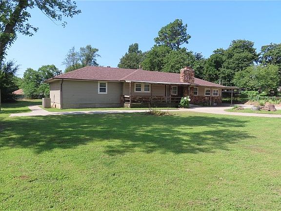 Fantastic location!! frontage on SE 29th just east of Indian Meridian and SE 29th Intersection possible commercial potential. Over half acre lot! Charming exterior with large concrete circle drive. Large back yard, storm shelter screened in porch, New roof 2017 along with Floor joists subfloor in most of home replaced by Atlas foundations 2017. Homes features 4 bedroom 2 living and 2 bathroom. Kitchen beautiful new granite counter tops and wood vinyl plank floors. All new flooring and paint thru out home. Main living area features new carpet a ship lap wall with large stone fireplace wood burning has a gas line can convert to gas logs. Large Second living area. Lovely master bed with barn door ensuite bath features, granite counter double vanity, builtin makeup vanity. walk in closet. Well appointed guest bathroom with granite countertop tile tub surround wood vinyl plank floors. Large mud- laundry room with screen porch back yard access.