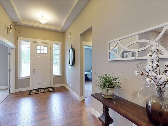 Luxury home in a gated community with a park like setting amidst your own wooded acreage. Open floor plan with 4 beds, office, and 2.5 baths all on one level. Covered patio built for entertaining with fireplace, wired for TV, and gas hookup for BBQ. Watch the deer pass by the floor to ceiling windows. Quartz countertops, SS appliances, custom woodwork, custom lighting, outdoor sprinkler system, gas hookup for generator. Too many custom finishes to list, come see!