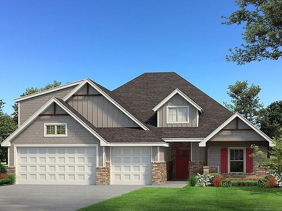 This Blue Spruce Bonus Room 1 floor plan includes 2,640 Sqft of total living space, which features 2,350 Sqft of indoor living & 290 Sqft of outdoor living space. There is also a 590 Sqft, three car garage with a storm shelter installed! This home offers 4 bedrooms, 3 full baths, 2 covered patios, a large bonus room, & a utility room. The great room welcomes a pristine cathedral ceiling, a ceiling fan, excellent wood-look tile, elegant crown molding, & large windows. The kitchen supports stainless steel appliances, 3 CM countertops, a center island, well-crafted cabinets to the ceiling, exceptional pendant lighting, & a separate walk-in pantry. The primary suite features a sloped ceiling, windows, a ceiling fan, & our cozy carpet finish. The attached primary bath hosts separate vanities, a walk-in shower, a Jetta Whirlpool tub, & a HUGE walk-in closet. Outdoor living has a wood-burning fireplace, a gas line, & a TV hookup. Other amenities include our healthy home technology, a tankless water heater, a whole home air filtration system, R-44 insulation, & so much more!