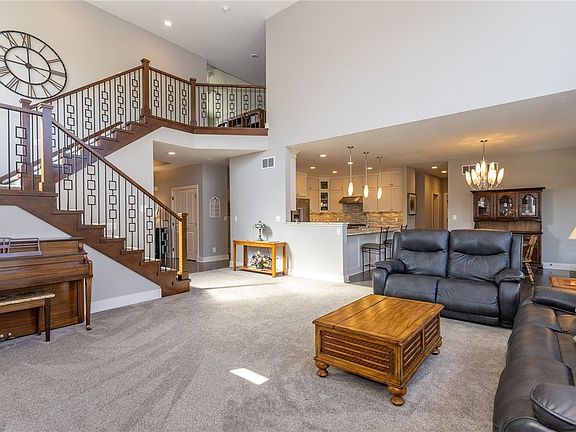 Nestled in a sought-after executive Western Urbandale neighborhood, this exceptional 1.5 story home is a true masterpiece, offering the perfect blend of luxury, comfort, and sophistication. Prepare to be captivated from the moment you step through the inviting entryway with decorative entry ceiling and into a world of refined living. The owner's suite is thoughtfully located on the main floor, providing a walk-in closet, double vanities, water closet, walk-in full tile shower. The open kitchen features a dining area, SS appliances, gas range, custom cabinets to the ceiling, and pantry. Tons of natural light pours in through gorgeous 2 story windows in the grand living room with a gas fireplace surrounded by built-ins. Formal Dining Room or bonus flex room, Laundry Room with sink, storage cabinets and folding counter, mudroom with lockers and coat closet complete the main level. The split staircase with rain glass window leads you to the upper level, with a loft bonus area, 2 additional bedrooms both with walk-in closets, full bathroom with double vanities. Finished lower level is perfect for entertaining, 2nd living room, bar area with wine cellar, 4th bedroom and bathroom. The Covered Trex deck is huge and extends along the back of the house and overlooking the private backyard with mature landscaping and trees. Easy access to shopping, dining and interstate. All information obtained from Seller and public records.