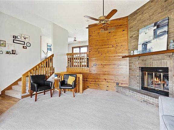 Get ready to enjoy spring from your sunroom or composite deck or spacious treed yard! So many choices for a private retreat or entertaining with this 3 bedroom, 2 bathroom home on large cul-de-sac lot. Living room features vaulted ceiling with floor to ceiling brick fireplace. Kitchen opens to dining room, with views to backyard, access to deck and updated flooring. Bonus stainless steel appliances, Corian counters, under-mount sink, and cabinets with pull-out shelves. Primary suite includes walk-in closet, private bath and access to sun room. Family room in basement with extra storage. Mud room off garage entrance with laundry hook-ups. Treat yourself to an extra deep garage, 4 year old roof, gutter guards, 5 year HVAC and updated windows. Ready to move in and add your personal touches to make home.
