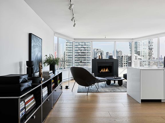 Chic city home @ Seastar by Bosa Properties, entirely reimagined by Provide Home & Robert Bailey Interiors. This residence boasts 926 sf of open plan interior and offers captivating False Creek views w/ E & S exposure. A focal gas fireplace is featured & the kitchen is furnished with custom cabinetry, a Kallista faucet, cearstone counters/backsplash and integrated Bosch & Liebherr appliances. The bathroom is fitted w/ Duravit fixtures, custom tile work & Nuheat. Stunning white oak plank hardwood throughout and black hardware accents reflect the home’s signature style. Seastar is a well-respected, meticulously managed address, and the amenities include a caretaker, guest suite, fitness center, lounge/garden area & ample visitor parking. This sophisticated designer's dream residence awaits.