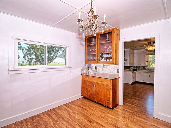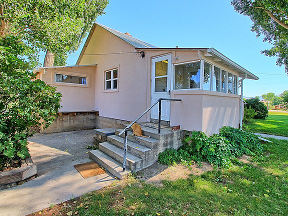 Charming family farmstead on 5 irrigated acres. Spacious kitchen, dining, and living room. New plumbing. Newer carpet. Enclosed porch and covered porch. Unfinished 500 sq ft. basement. Great rental property potential and room to build your dream home. Wonderful large shade trees, apple orchard, and huge cherry tree. Plenty of room to garden or raise livestock. Four outbuildings including shop, metal shed, and milk barn. Corral and lots of equipment storage. Beautiful open space and monument views. Adjacent to 40 acres and large 200+ acre farm ground. Must see!