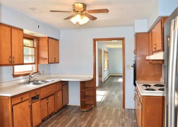 Brick ranch on a corner lot close to Schools. Nice layout with spacious rooms. Newer flooring throughout. The kitchen has built-in oven and refrigerator. Main floor laundry with half bath. Roof (2007), Central air (2008), New Water Heater. Pull down attic storage in the garage with built in cupboards and work bench. Crawlspace has an outside door. Storage shed.