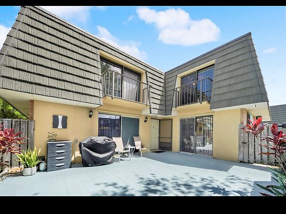 Charming 2 Bedroom Townhouse w/ Private Patio This inviting 2 bedroom, 2.5 bathroom townhouse offers the perfect blend of comfort and convenience. Located in a quiet, well-maintained community, the townhouse features an open-concept living area with plenty of natural light & beautiful floors throughout the home. The modern kitchen comes equipped with stainless steel appliances, quartz countertops, and ample storage space, making it perfect for cooking and entertaining. The cozy living room leads out to your very own private patio, offering a peaceful retreat for outdoor dining or relaxation. Upstairs, you'll find two generously sized bedrooms, each with its own en-suite bathroom & Juliet balcony overlooking the patio. Ideal for unwinding after a long day. Additional features include in-unit laundry, assigned parking, home security system, and access to community amenities like a pool and clubhouse. With easy access to local beaches, shopping, dining, and major highways, this townhouse is perfectly positioned to enjoy all that Florida has to offer. Available now, don't miss out on this incredible opportunity! Landlord covers hoa/water/home security Tenant pays electric. No smoking inside. Most pets ok. 2 Assigned parking spaces