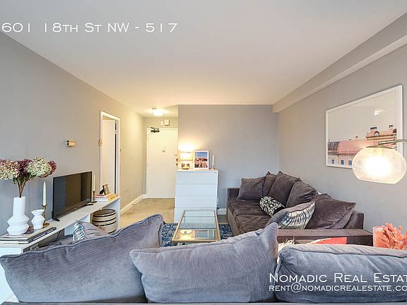 0 Bed / 1 Bath Studio available June 6th at 1601 18th St NW #517 This cute and cozy open concept studio apartment has new carpet, fresh paint, and great natural light throughout. Your living space is generous in size and has many options to serve as a dining area, living area, and bedroom. Your beautifully updated kitchen comes with granite countertops, custom cabinets, tile flooring, and a built-in wine rack. New stainless steel appliances include a fridge, microwave, dishwasher, and oven. A large walk-in closet also provides access to your own bathroom that features an attractive vanity, large shower, cherrywood cabinets, and crisp features. Exactly one block to Dupont Circle Metro. The Imperial House Condominium provides secure access with unmatched amenities including a 24-hour concierge, mail and delivery services, and an unbelievable rooftop with exceptional city views. Indulge in some of DC's best restaurants including Nooshi, Komi, The Palm, or The Riggsby. Visit the Anderson House, grab a book and coffee at Kramerbooks & Afterwords, visit the National Geographic Museum, take a walk around Embassy Row, go shopping on Connecticut Avenue, or connect with art at the Phillips Collection. A quick and easy drive to the National Zoo and Rock Creek Park. 12 month lease preferred. Water, gas, and electric included! Tenant pays for cable, and internet. Street parking only. Shared laundry in building. Pets considered on a case by case basis with fee. Reply to the ad to book a tour! Easy online application takes only 10 minutes to fill out.
