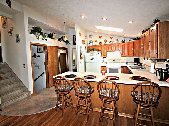 Have a look at this 4 bedroom, 2 bath townhome with an ample amount of living space, an OVERSIZED 3 stall garage, .29 acre lot, underground sprinklers, and steel siding for only $219,900. This multi-level NW home features a spacious entryway with a coat closet leading to the main floor. The main level boasts vaulted ceilings in the kitchen and dining room with beautiful hardwood floors and an electric fireplace. The kitchen features a large panty, new flooring, breakfast bar area, and a skylight to let in extra natural light. Right off the kitchen and dining area you can head to the cozy family room with a patio door which leads to the large deck- perfect for entertaining! Off the deck is the HUGE yard with a privacy fence and storage shed. Back inside is a bedroom/office space off the family room. The upper level is where you will find 2 more nice sized bedrooms and a full bathroom. The lower level is very appealing with a spacious daylight living room with high ceilings and electric fireplace, master suite, and laundry/mechanical room. The master suite boasts a LARGE bedroom with 3 closets (1 is walk-in). The spacious bathroom is a relaxing getaway with a jetted tub and separate shower. WOW! The perks are endless! This home also boasts a 420 sq ft crawl space for extra storage with a concrete floor and insulation and a HUGE (1008 sq ft) 3 stall garage that is insulated and sheetrocked with a large amount of storage space as well. Call today to set up a showing!