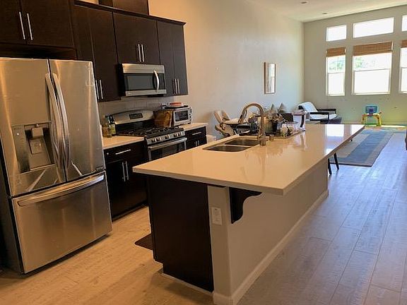 Beautiful townhouse that was built in 2015 gives you the feel of living in a house. Located in a well-manicured community with a fountain, lighted walkways, and green space, this beautiful east-west facing home has an open floor plan and large 12 foot ceilings in the great room. The huge windows look onto the hills of Walnut Creek and bring in great sunlight! Master bedroom suite and second bedroom are on separate floors, each with spacious walk-in closets. Large island kitchen with Caesar stone counters and in-unit laundry. Commodious and clean two-car garage. Walking distance to Walnut Creek and Pleasant Hill BART stations, 24 Hour Fitness, Sprouts, and easy access to Highways 24 and 680. 5 minute drive to downtown Walnut Creek.