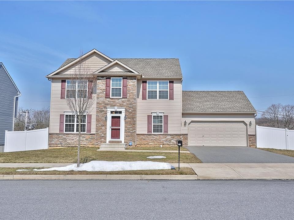 Gorgeous 2017 Claremont model colonial home situated in South Whitehall Twp. This 3 bedroom, 2 ½ Colonial is nestled within Parkland School District with quick and direct access to Route 22. Home features a beautiful floor plan offering a welcoming foyer, large bright living room with gas fireplace, large open eat-in kitchen with granite counter top, stainless steel appliances and a large walk-in pantry. Engineered hardwood floors, first floor laundry and powder room. Entertain friends or just relax on the upper deck overlooking the abundant community garden and park. The second floor has 2 spacious bedrooms, full bath, the master suite that offers a full bath and a large walk-in closet. Walk out unfinished basement with large windows, a 6 foot slider to a lower deck, and vinyl fenced in yard. Attached 2 car garage with opener. Easy access to all area amenities.