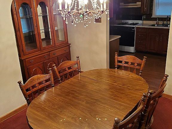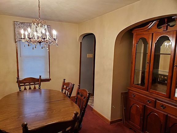 This house in great move in condition! Very pretty kitchen with cherry cabinets, one with chopping block top. (Hotpoint range & Whirlpool Dishwasher) Laminate Floor. Large Liv R Room with Fireplace (seller never used, red tagged) and wall sconces . Dining room has chandelier & W/W . (lighted Hutch, if not sold, it can be incl. if Buyer wants) One Bedroom with walk in Closet. Porch and a Shed in back. Full bath partially updated! Sewage is complete and in compliance!