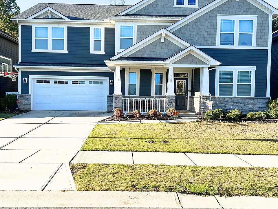 Welcome home! Tucked away w/ privacy on a cul-de-sac street & access to nature trails. Fenced in backyard backs up to woods w/ hot tub spa under large rear covered porch w/ extended patio. Open floor plan provides gorgeous gourmet kitchen w/ huge island breakfast bar granite countertops & smart appliances overlooking family room w/ cozy gas fireplace. Mudroom w/ drop zone & oversized pantry. Huge loft area & in-law suite perfect for guests/multigenerational living. Spacious primary suite w/ tray ceiling chandelier oversized walk-in closets. Crown molding throughout & large secondary bedrooms. Large laundry room with ample storage. Modern light fixtures & updated flooring throughout w/ whole home air purification system. Community features neighborhood pool clubhouse playground & area for sports & planned activities! Zoned for highly sought after school district. Minutes to Bypass & I-485, Uptown Charlotte, Airport & everything you need close by! Schedule your showing today!