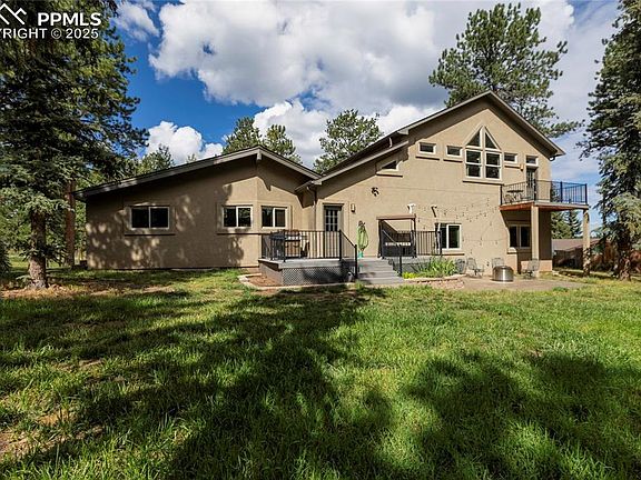 Great 4 bedroom, 3 bath home in northern Woodland Park. This home is just outside the City Limits creating lower property taxes. The original home was built in 1973 and has been entirely updated/remodeled. A 2,000 sf, 2 story addition was completed in 2019 with quality finishes. This home is move in ready! The stamped concrete, covered entry leads into a large family room. This relaxing area is great for gathering. The upgraded kitchen features granite counters, large island, stainless appliances and farm sink. The upper level features a huge primary bedroom with walk in closet, wonderful ensuite bath, additional bedroom and office/work area. The larger than average .84 acre lot is well treed and level. This large yard delivers plenty of room for RVs and additional toys. The exterior has 2 composite decks, stucco exterior and privacy fencing on the south side. This is a great opportunity to own a like new home in one of Woodland Park's best areas.