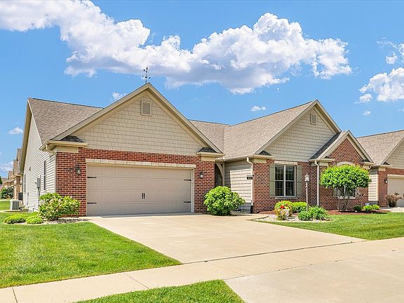 Welcome to this zero-lot home, perfectly situated on a desirable corner lot next to the neighborhood park. The exterior impresses with its classic stone and brick finish, complemented by a fully fenced backyard and a convenient sprinkler system for effortless lawn care. Inside, the spacious living room stands out with its vaulted ceilings, warm hardwood floors, and an inviting fireplace, making it the perfect spot for gatherings. The kitchen is designed for both style and function, featuring granite countertops, a central island for casual dining, and a full suite of modern appliances. Adjacent to the kitchen, the sunlit dining area offers scenic views of the seamless screened-in porch and nearby pond, creating a serene space for meals. The main level boasts a comfortable master suite, complete with a custom walk-in closet, as well as an additional bedroom and full bath. The finished basement adds versatility, offering a large family room, a guest bedroom with its own full bath, and ample storage in the unfinished portion. Practical touches like custom blinds, thoughtful landscaping, and a spacious two-car garage enhance everyday living. Don't miss your chance to see this fantastic home! Schedule a showing today!