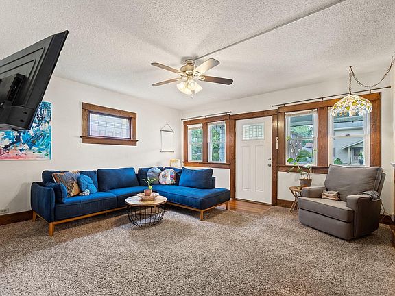 This Crescent Charming Craftsman style home is a treasure! Home is nestled in a lovely neighborhood. As you enter the home, you are greeted by breathtaking woodwork & stained glass. Stunning French doors accent a large dining room that is perfect for entertaining guests or enjoying a delicious meal. Just off the dining space is a sunroom with lots of natural light. The kitchen is spacious, bright, and thoughtfully designed. The main floor bathroom boasts beautiful tile, and a large vanity. The main floor has two large bedrooms with refinished hardwood floors. Upstairs, a separate living space with bedroom, full newly renovated bathroom, and living room. This has brought in extra income as an Airbnb. The large, unfinished basement has ample space for storage and new sump pump. For those who love the outside, there is plenty to love here: a covered front porch in the front, beautiful landscaping, and a large, fenced in back yard and new gutters! 2 car garage!