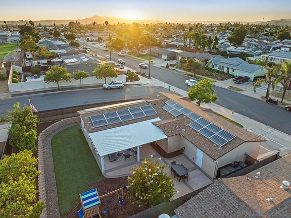 Ready to be impressed? This updated, single-story residence features 3 spacious bedrooms & 2 remodeled bathrooms. Offering 32 OWNED solar panels! The home includes a recent room addition, creating a luxurious primary suite with vaulted ceilings, an en suite bathroom, and a sliding glass door to the outside. The remodeled kitchen is highly functional with ample storage. Both the front and backyards are low maintenance with artificial grass. The backyard has a large covered patio perfect for enjoying the outdoors and producing fruit trees! This home is the perfect blend of modern updates and practical features, ready for you to enjoy.